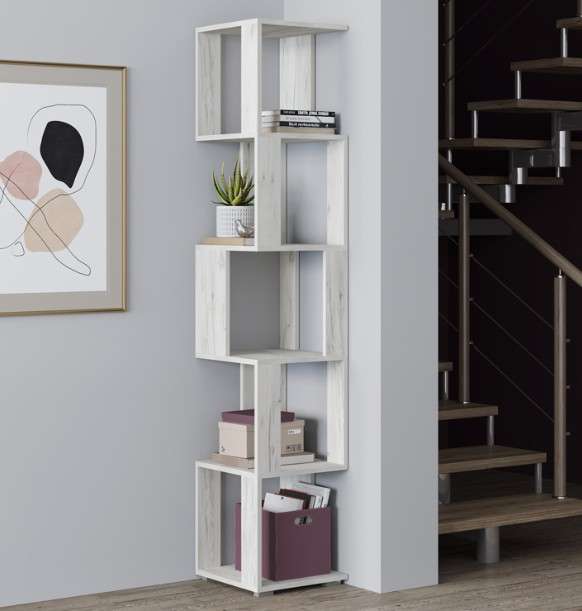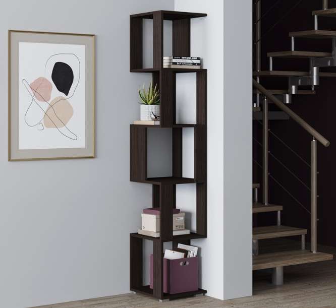 Стеллаж № 3 представляет собой легкую конструкцию, которая не будет загромождать интерьер. Данная модель визуально кажется «воздушной», будто парящий в воздухе, но в тоже время на его полках можно расположить дорогие сердцу вещи, сувениры и аксессуары и сделать комнату еще уютнее.