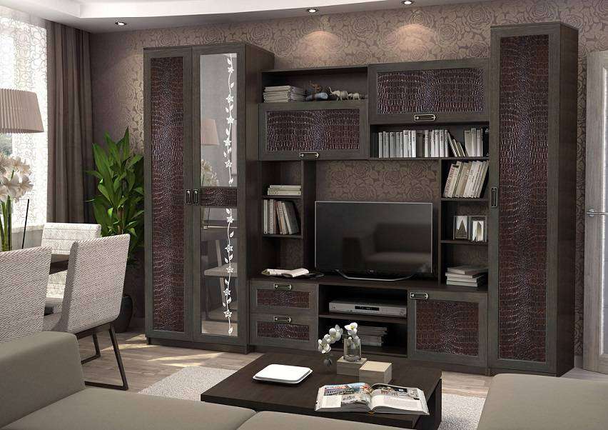 Стенка АЛЛЕГРО-6 экокожа Caiman темный
