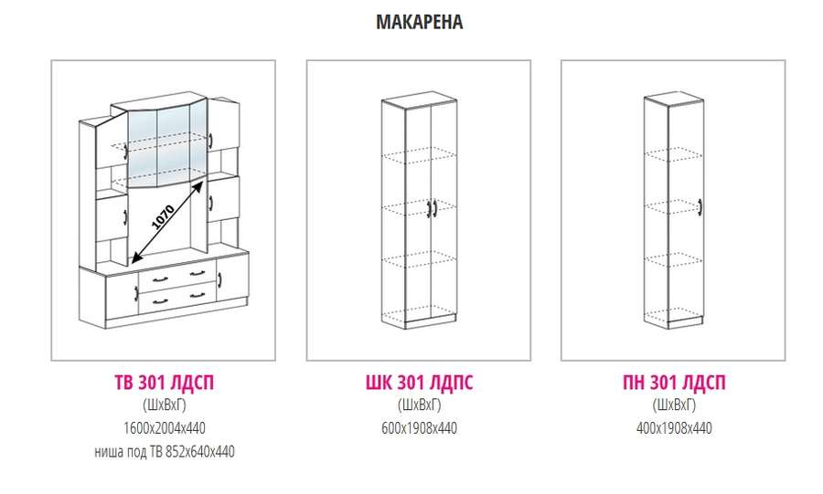 Цена на сайте указана за гостиную на первой фото с двумя шкафами, Размер: 2800х2004х440 (ШхВхГ), ниша под ТВ 852х640х440 мм.