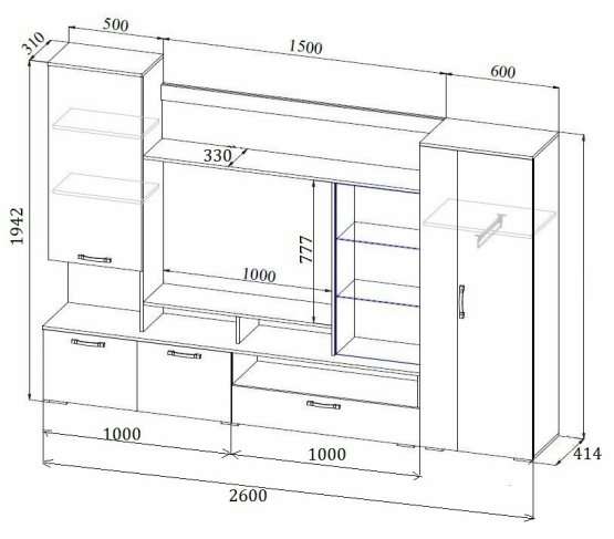 Ниша под ТВ: (ШхВхГ) 1000х777х330мм.