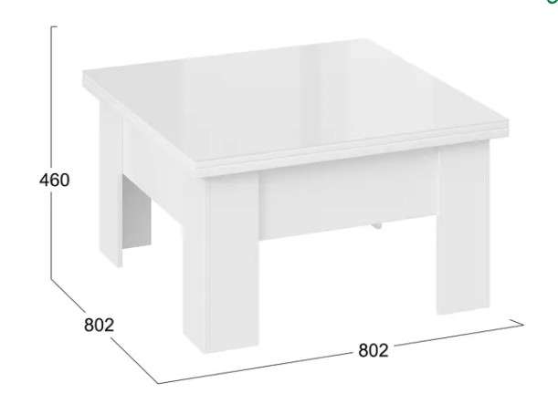 Glance Стол журнальный тип 1 — сверкающая белоснежная модель для современного интерьера. Стол изготовлен из ЛДСП, столешница квадратной формы дополнительно покрыта закаленным стеклом Белый глянец. Стол Glance — трансформер, механизм раскладки подъемно-раздвижной.