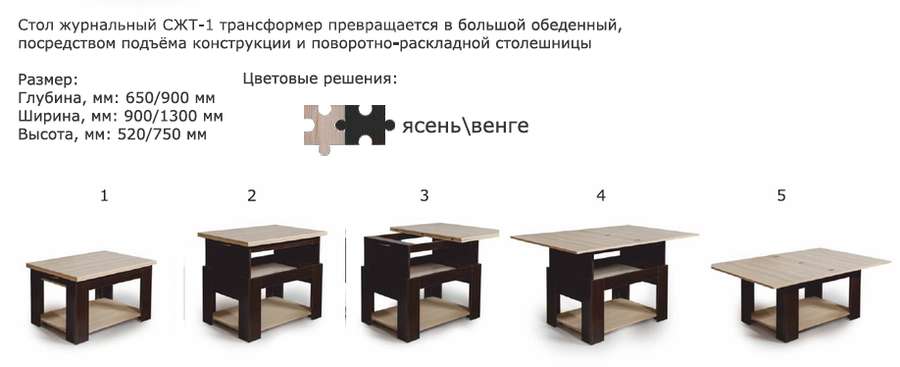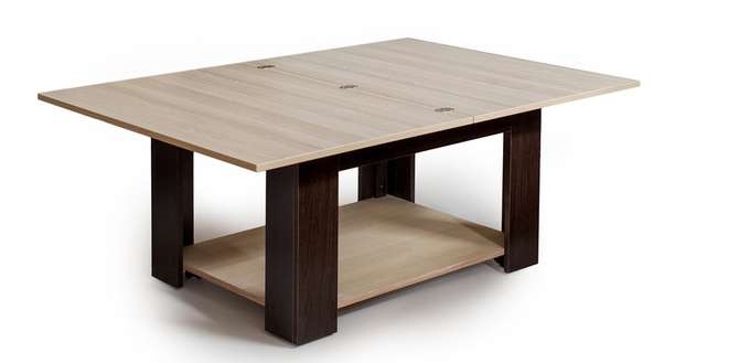 Стол журнальный - трансформер превращается в большой обеденный стол. Благодаря простому механизму трансформации журнальный стол идеально сочетает в себе такие качества как: надежность и функциональность.