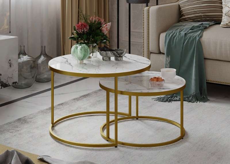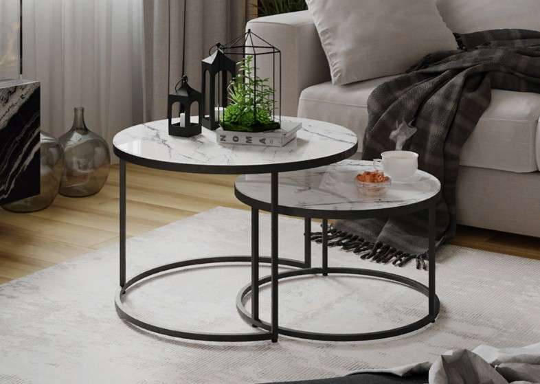 Оригинальный стол , состоящий из двух столиков, подойдет для гостиной любого размера.