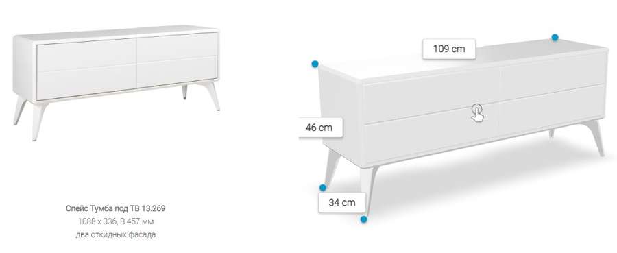 Тумба Спейс - это модное, современное и технологичное решения для гостиной. Все видимые части тумбы выполнены в белом глянцевом декоре, который делает тумбу эффектной и простой. Декоративные фаски графично очерчивают лаконичную геометрию. Отсутствие лицевой фурнитуры и использование механизмов push-to-open дополняют современный образ. Металлические ножки служат надёжной опорой для изделия, а их белый глянцевый декор делает тумбу и ножки единым целым.