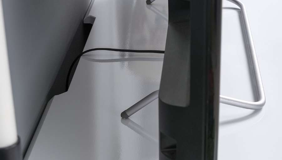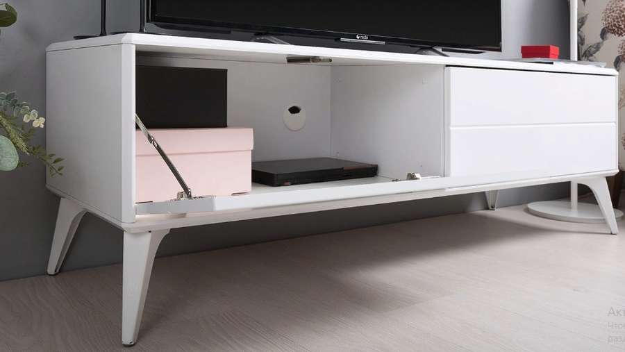 В тумбе предусмотрена система вырезов под провода, что делает установку и подключение техники быстрой, простой и приятной. При этом все лишние провода окажутся скрытыми.