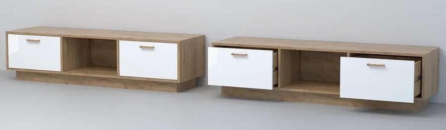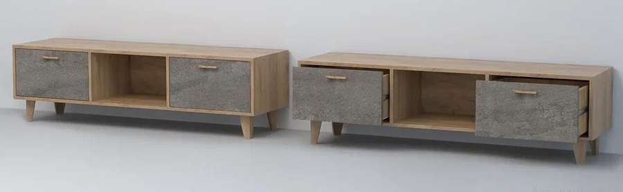Тумба - функциональный и стильный предмет интерьера. Снабжена выдвижными ящиками и открытой нишей для хранения.