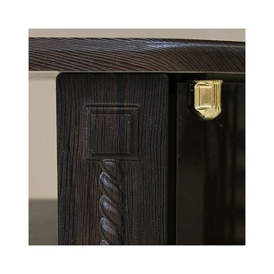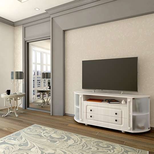 Небольшая удобная тумба под ТВ «Азалия» прекрасно впишется в классический или современный интерьер гостиной, холла или любой жилой комнаты. Фигурные планки с имитацией резьбы по дереву, гнутые стеклянные фасады, филенчатые фасады ящиков и изящные ручки придают модели легкость и романтичность. Помимо глубокой ниши для техники, тумба оснащена двумя выдвижными ящиками. Столешница выполнена из МДФ 22 мм.