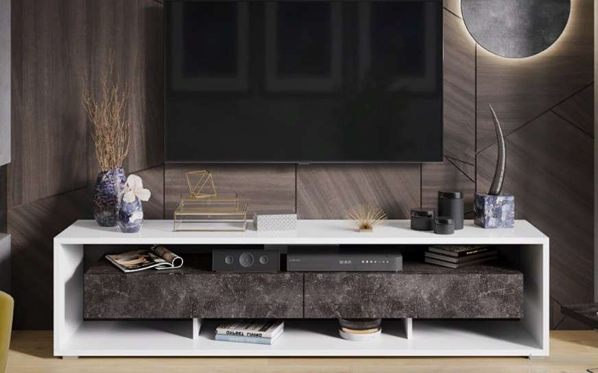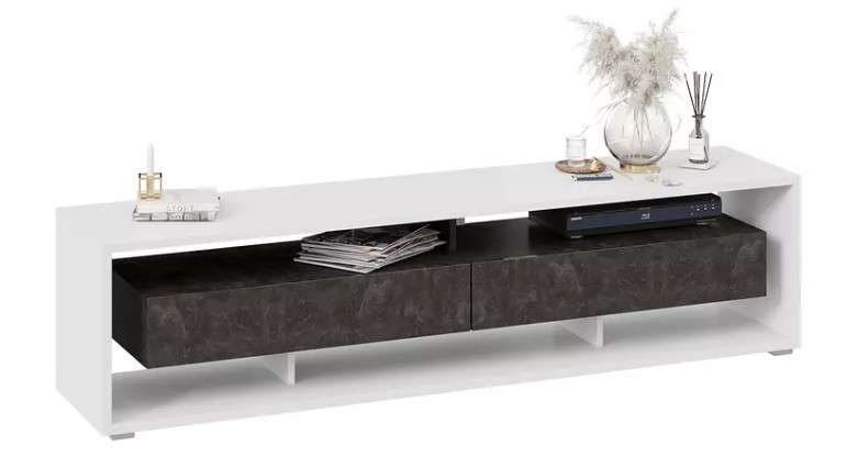 Зона вокруг телевизора может быть главным акцентом, поэтому её оформление - вопрос не только функциональности, но и эстетики. Тумба под ТВ «Монтана» имеет геометричный силуэт и привлекательную цветовую гамму, превращающую новинку в модуль, который идеально дополнит любой современный интерьер.