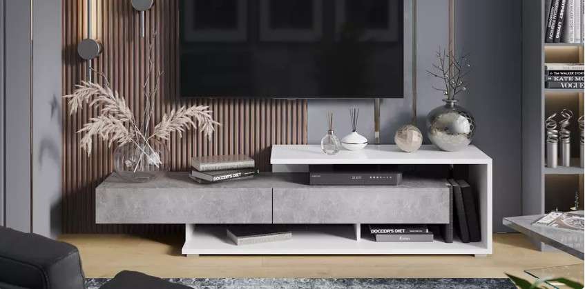 Зона вокруг телевизора может быть главным акцентом, поэтому её оформление - вопрос не только функциональности, но и эстетики. Тумба под ТВ «Монтана» имеет геометричный силуэт и привлекательную цветовую гамму, превращающую новинку в модуль, который идеально дополнит любой современный интерьер.