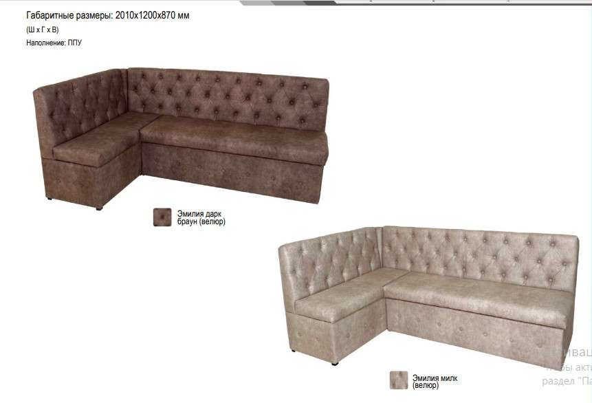 Ткань: Велюр Эмилия Милк, Велюр Эмилия Дарк Браун, Эмилия Грей, Эмилия Смок.