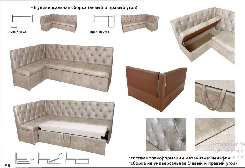 Кухонный диванчик выполняется в 2-х вариантах: ПРАВЫЙ и ЛЕВЫЙ.
