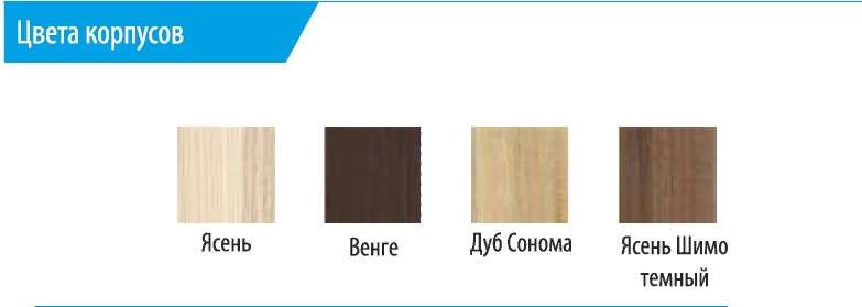 Цвет ЛДСП: Ясень, Дуб Сонома, Ясень Шимо темный, Венге.