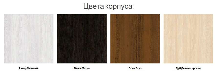 - Цвет каркаса: Венге, Орех Экко, Дуб Девонширский, Анкор светлый.
