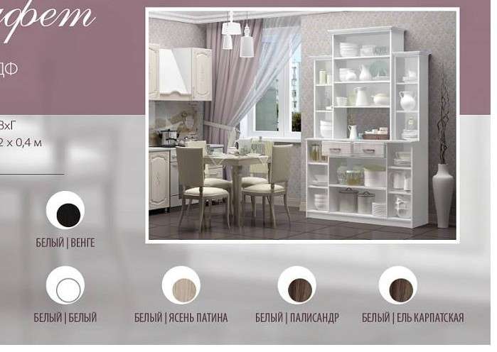 Цвет: корпус -белый , фасад МДФ- Скандинавский дуб белый, Венге, Ясень патина, Палисандр , Ель карпатская, Дуб крафт табачный, Белый.