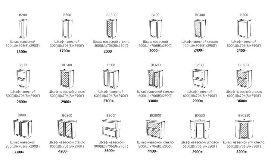 - Высота верхних шкафов 706 мм.
