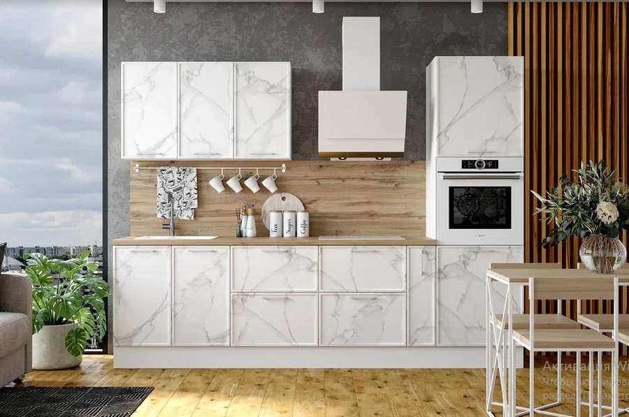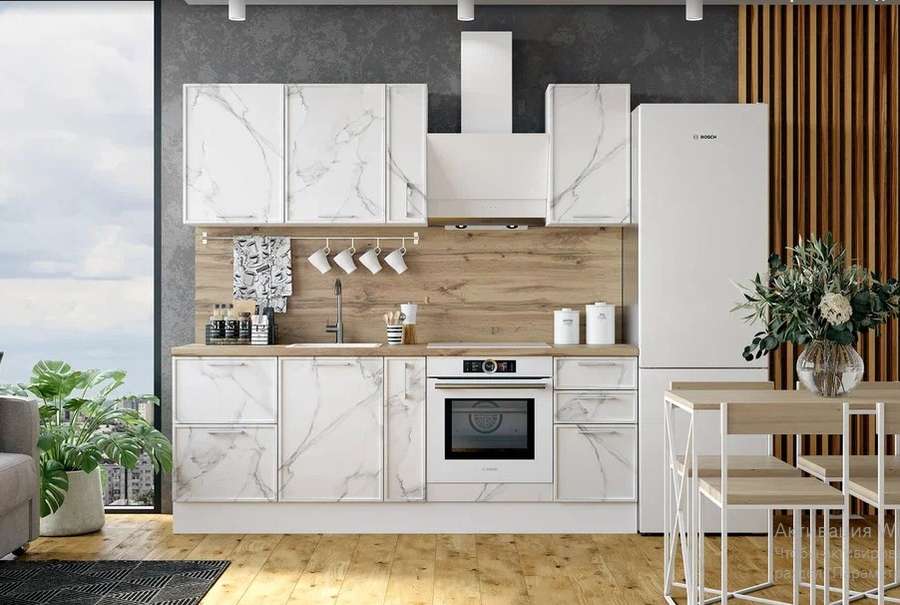 Модульная кухня «Элит» 2,2м. в цвете Мрамор Арктик включает в себя: 2200х446х2220, (ШхГхВ).