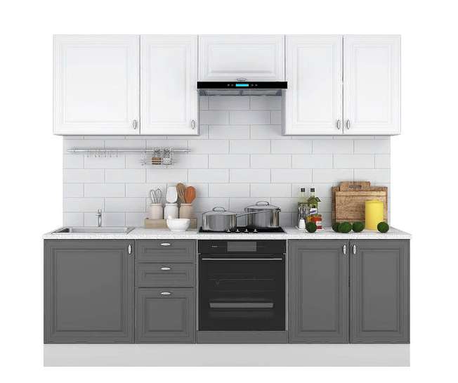 - Нижние модули: Стол/мойка 60, Стол 40, Духовка 60, Стол 80.