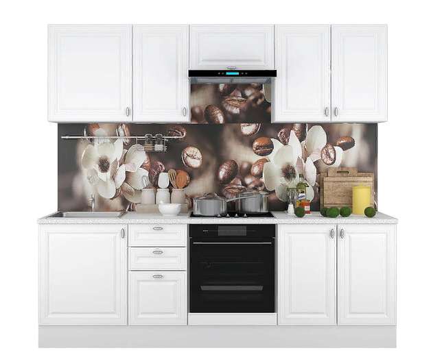 Цена указана за кухню в данной комплектации, со столешницами на каждый стол, можно заказать столешницу целиковую.