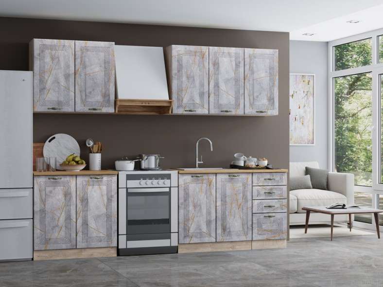 Кухня Гранд представлена ,как готовое решение, размером 1,6м 2,0м 2,5м 2,6м, также эти кухни можно дополнить модулями из модульной кухни Гранд.