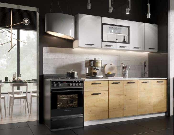 Кухонный гарнитур «Хозяюшка» ЛДСП 2,0м станет идеальным решением для небольшого помещения. Лаконичные фасады с контрастными ручками отлично смотрятся в современных интерьерах в скандинавском стиле или стиле эко. Гарнитур не занимает много пространства, при этом вмещает всю необходимую посуду и утварь.
