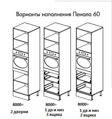 - Модули 600, 800 применяются как шкафы под глухие створки, так и под стеклостворки. Столы 50, 60 и 80 также используются как мойки.