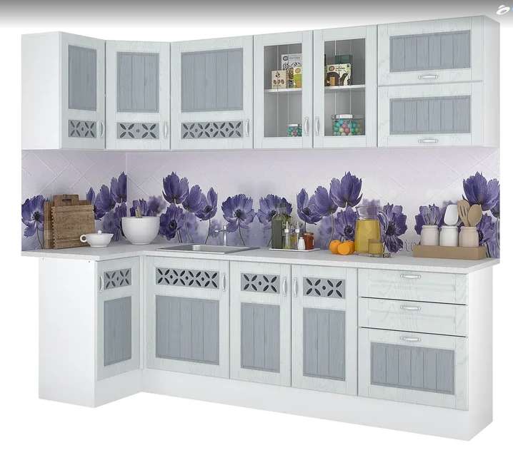 - Верхние модули: Шкаф 40, шкаф угловой 60х60, Шкаф 60, Шкаф витрина 80, Газовка 60-2шт..