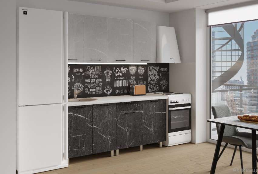 Кухня «Марбл» 1,8м и 2,0м - Готовое решение. В комплекте идут столешницы- на 1,8м и на 800 мм. и 1,2м