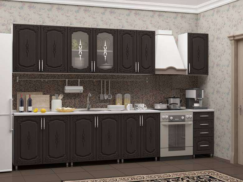 Материал: ЛДСП, Фасад МДФ. Вид фрезеровки-Мерано. Кухня стандартная выполняется размером 2,5м и 2,6м .