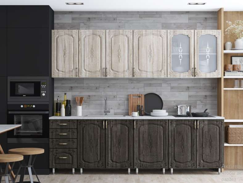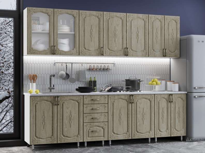 На первом фото Ель карпатская 2,5м , на втором фото -Венге 2,6, На третьем фото 2,5м в цвете Дуб скандинавский белый/Дуб скандинавский серый, На четвертом фото кухня 2,6м в цвете Ель карпатская.