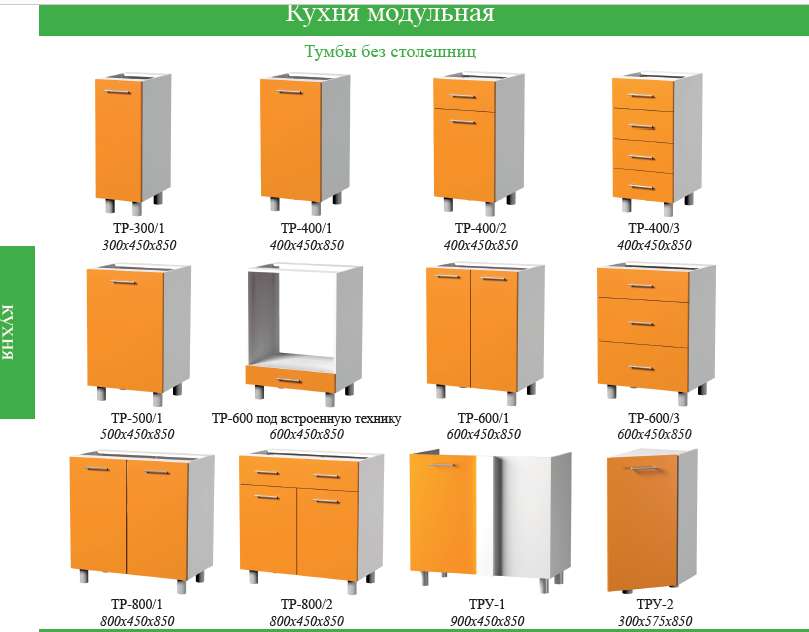 Мебель Модульная для кухни выполняется с разными вариантами фасадов.