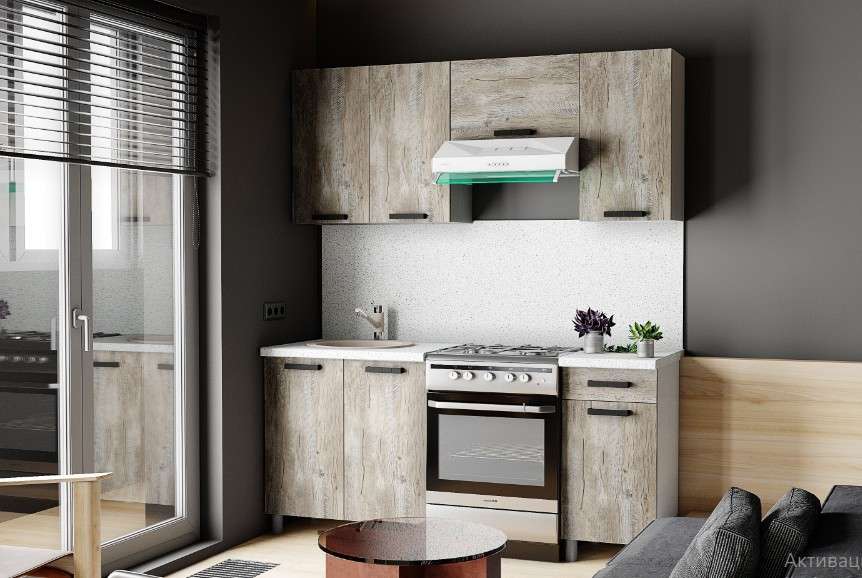 Столешницы 26мм -Антарес, Мраморный берег, Олдвуд, Дуб Вотан. У кухни размером 1,8м идут две столешницы- 800 мм и 400 мм, в кухне 2,0м две столешницы - 600мм и 800 мм.