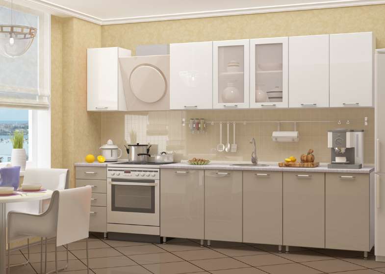 Кухня «Настя» 1,6м ,2,0м,2,5м,2,6м Белый глянец/Латте