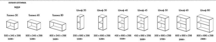 Кухня «Оптима» от производителя Горизонт-мебель изготовлена из высококлассных материалов с фасадами МДФ в спокойной цветовой гамме. Для того, чтобы вы смогли создать нужный интерьер кухни вашей мечты - выбирайте готовые варианты из предложенного ассортимента и дополняйте их модулями из серии мебели для кухни «Оптима». Также есть возможность с "нуля" создать рассчитать вашу кухню.