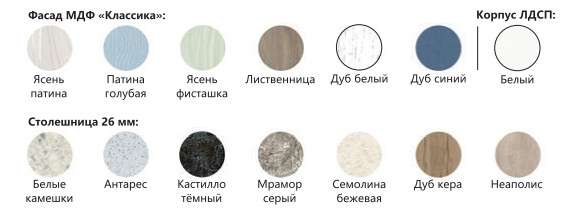 - 400 Одна створка (2 шт.), 400 Три ящика (2 шт.), 600 Духовка, (ниша под духовой шкаф - 567х600х560 мм), 500 Мойка.