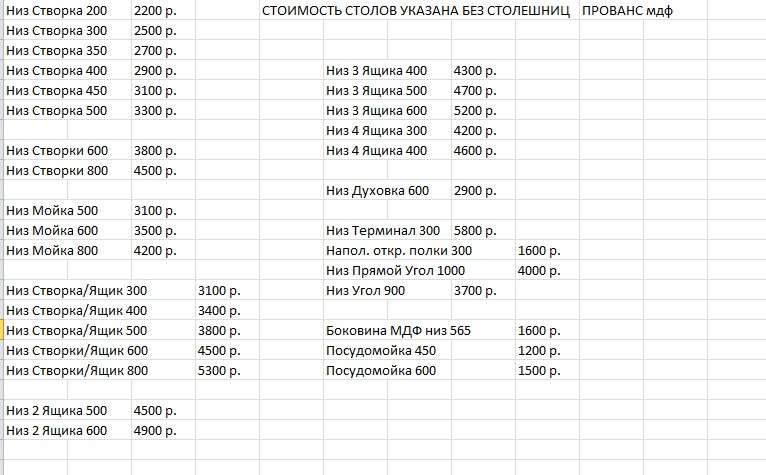 - Низ: 400 Одна створка, 400 Три ящика, 800 Мойка.
