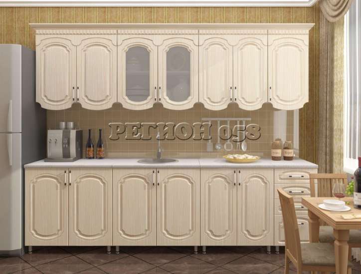 Кухня Скарлетт выполнена в классическом стиле, а, как известно, классика актуальна всегда. Эксклюзивная фрезеровка на фасадах и оригинальные ручки подчеркивают все изящество данной кухни.