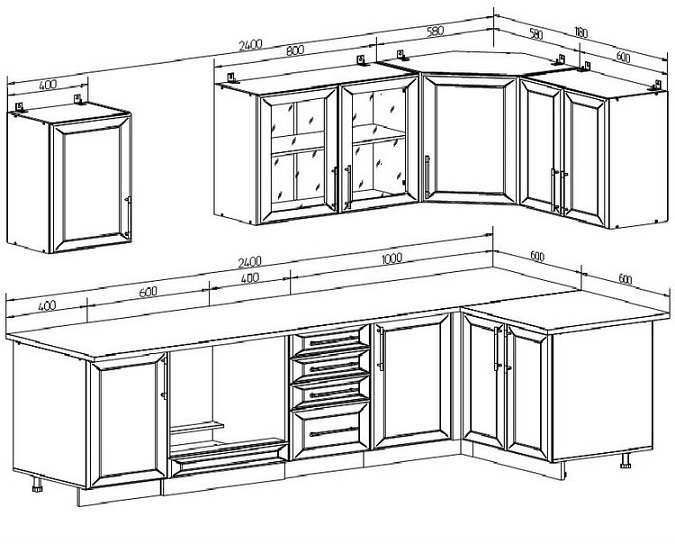 - Высота нижних шкафов - 82 см (без учета столешницы)