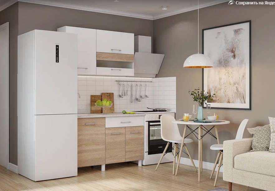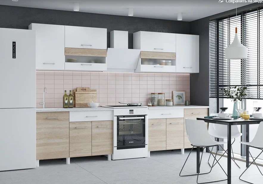 Объединяя два набора, размер кухни можно увеличивать, пример кухни 2,4м представлен на фото.