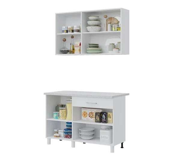 - Шкафы поделены на два отделения 70 и 50 см. Рекомендована установка сушки 50 см. Возможно врезать мойку, установить смеситель. Вылет столешницы можно менять.