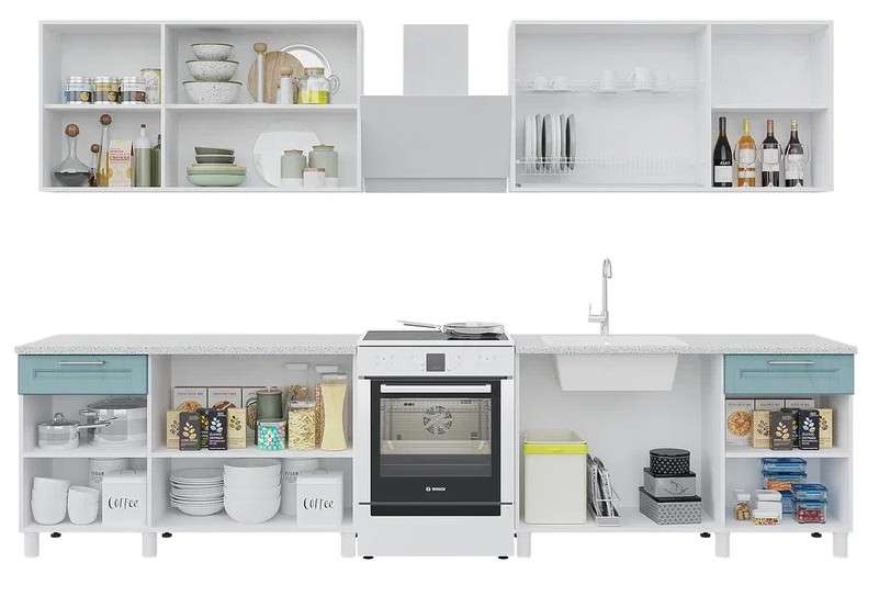 Верхний шкаф: 1300х690х300 мм, (ШхВхГ)