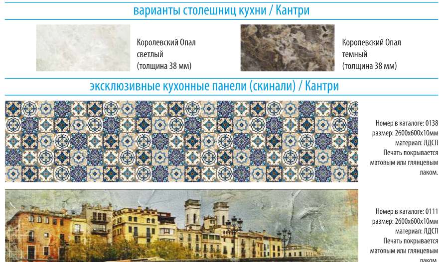 - Стеновая панель ( В цвет столешниц) 1 шт. - 3200 руб. ( Длина - 3м, Высота - 0,6 м, Толщина - 6 мм )