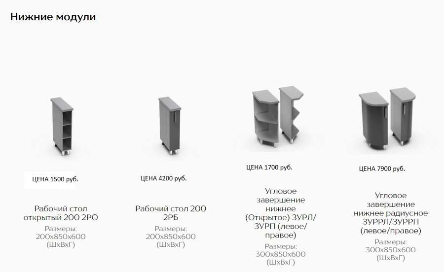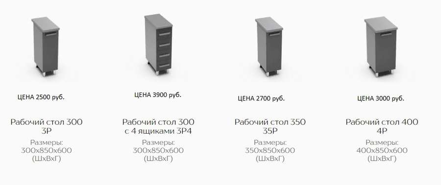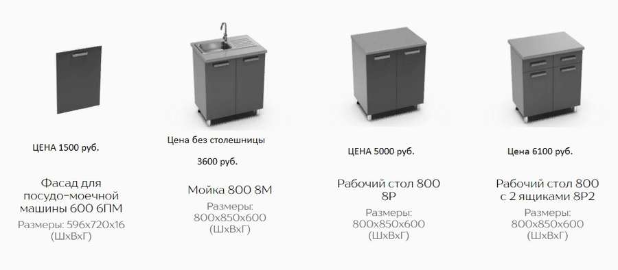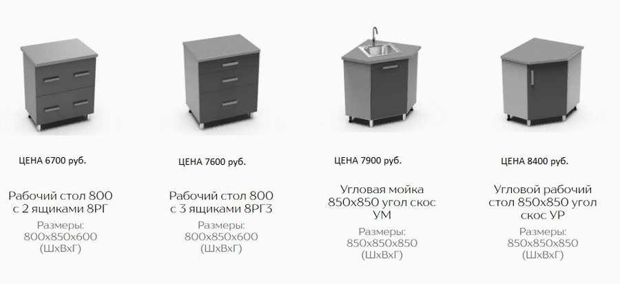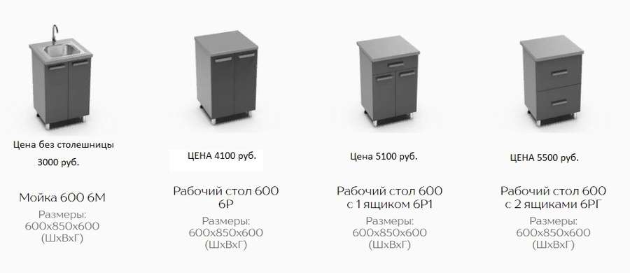 Высота рабочих столов указана с учетом столешницы 26 мм. Мойка и смеситель в комплект не входят.