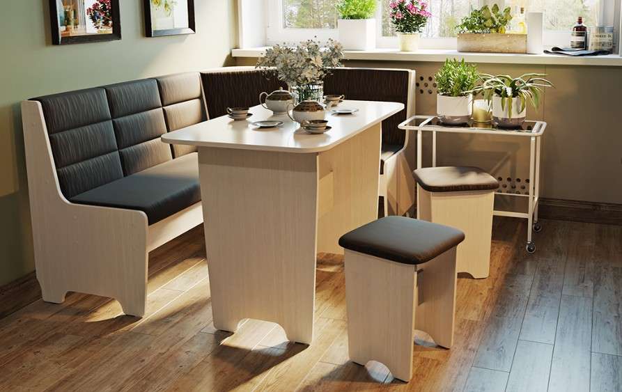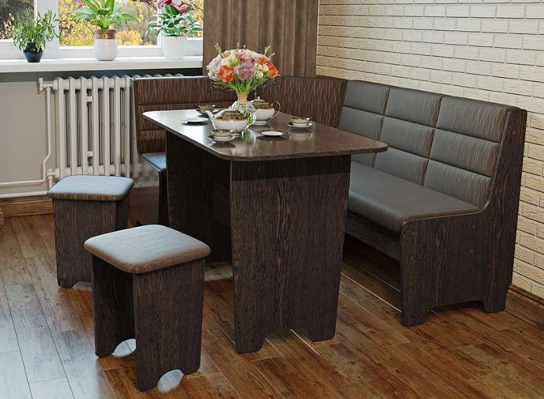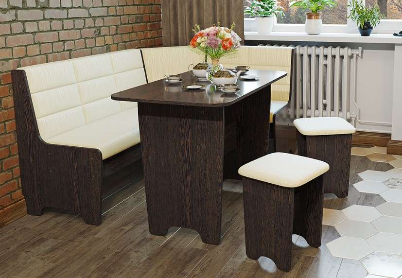 Кухонный уголок ТЕХАС состоит из углового диванчика, Стола и двух банкеток (табуретов).