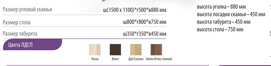 - Материал ЛДСП: Ясень, Дуб Сонома, Ясень Шимо темный, Венге
