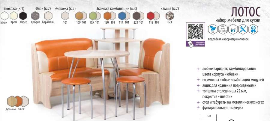 - Обивка : Экокожа - в ШИРОКОЙ цветовой гамме.