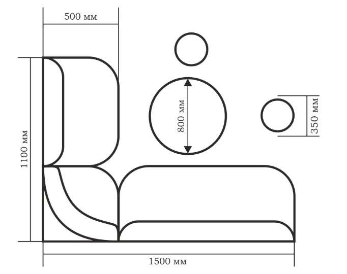 - Скамья угловая: ( 1500х1100 мм )х500х840 мм
