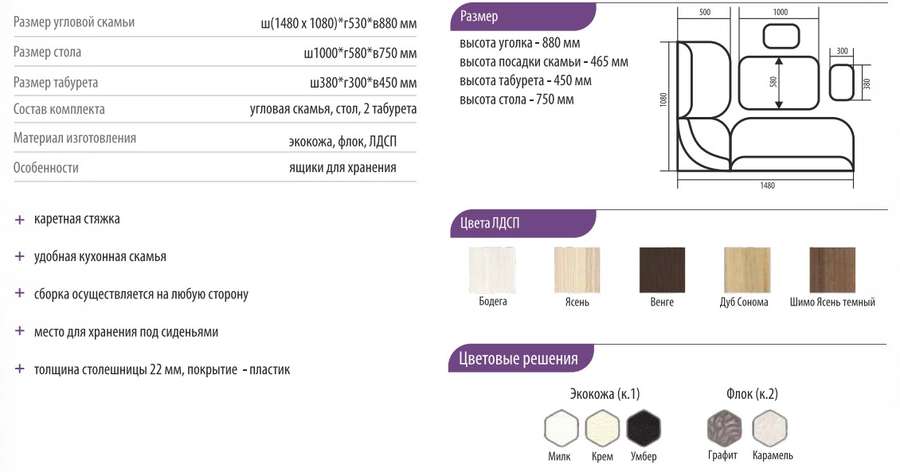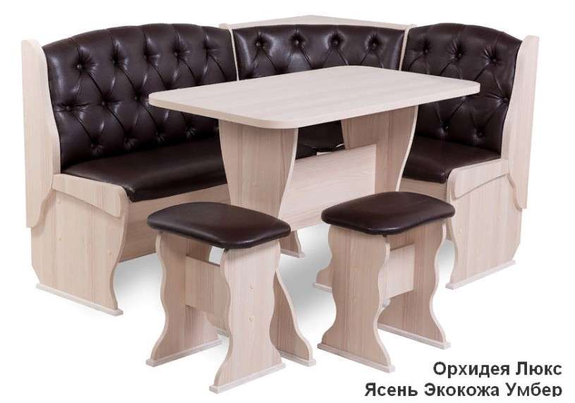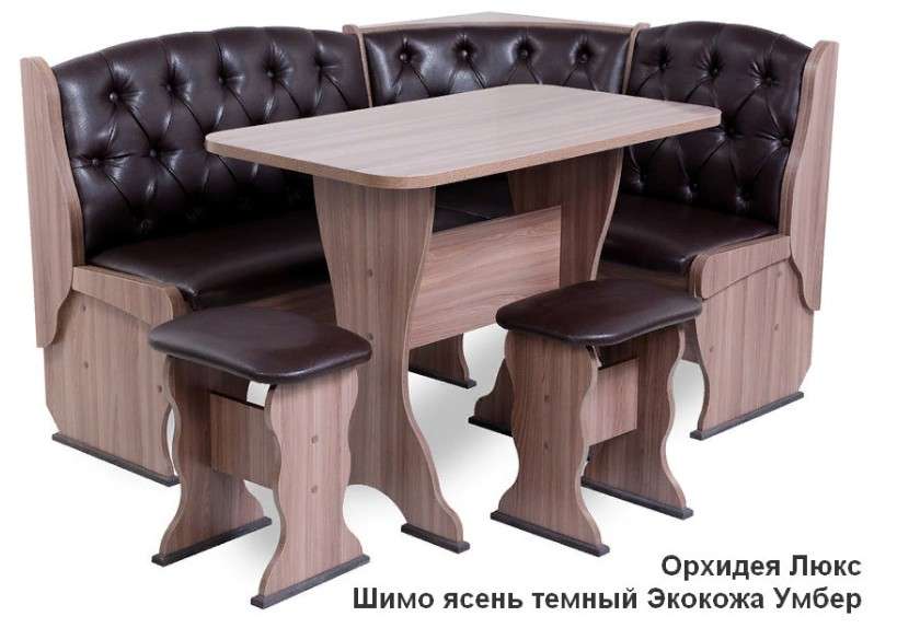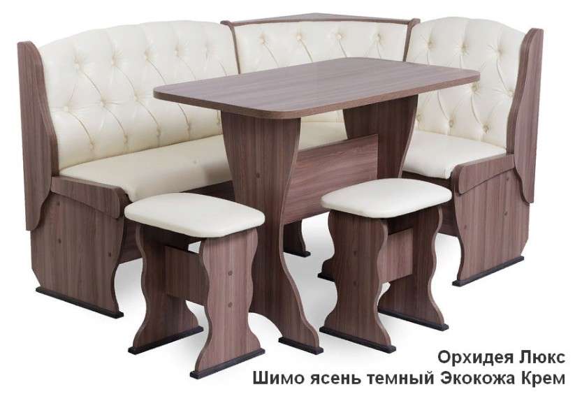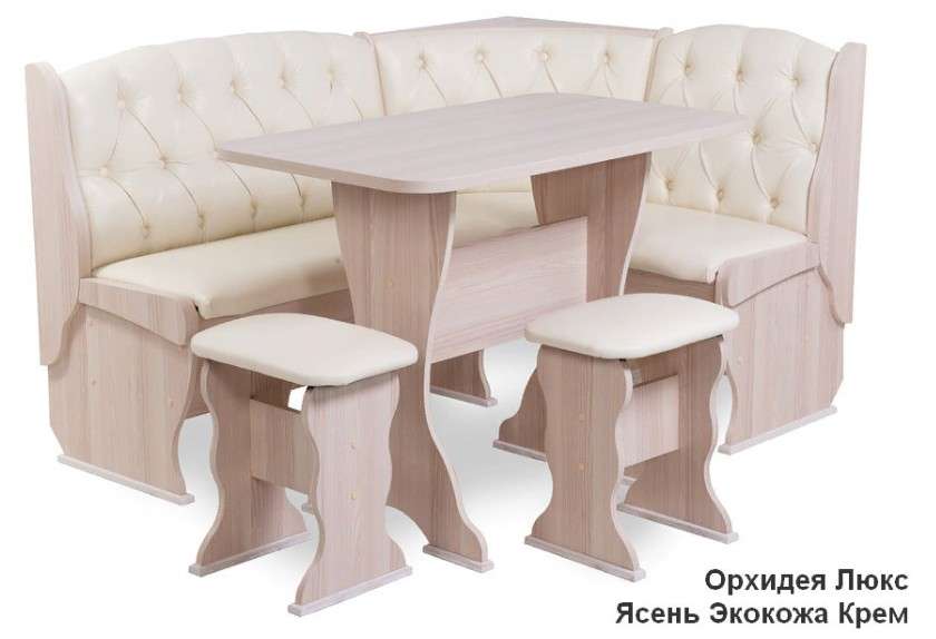 22 июля 2019 - СветланаВозможно ли купить набор кухонной мебели орхидея без табуретов только стол и скамья ,если да,какая цена. Ответ менеджера: Можно купить отдельно скамью угловую Орхидея, но не Люкс а просто Орхидея и стол СКР-1 или СКР-2 они идут или с одним ухом или с двумя, |