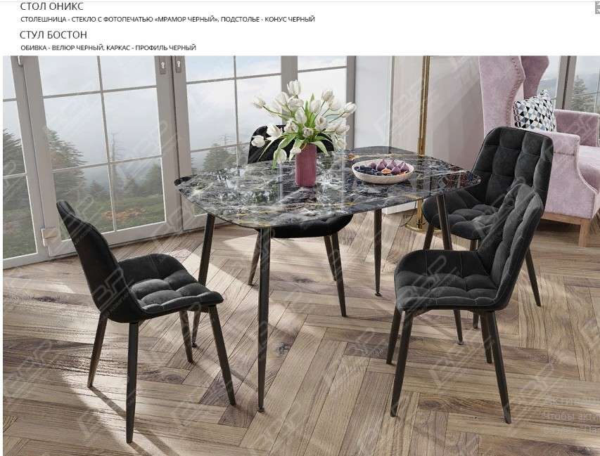 Стол обеденный Оникс имеет стеклянную столешницу четырех расцветок и два вида подстолья -Конус и Кросс.