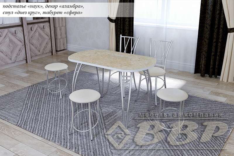 Каркас: хромированный. толщина столешницы: 22 мм.