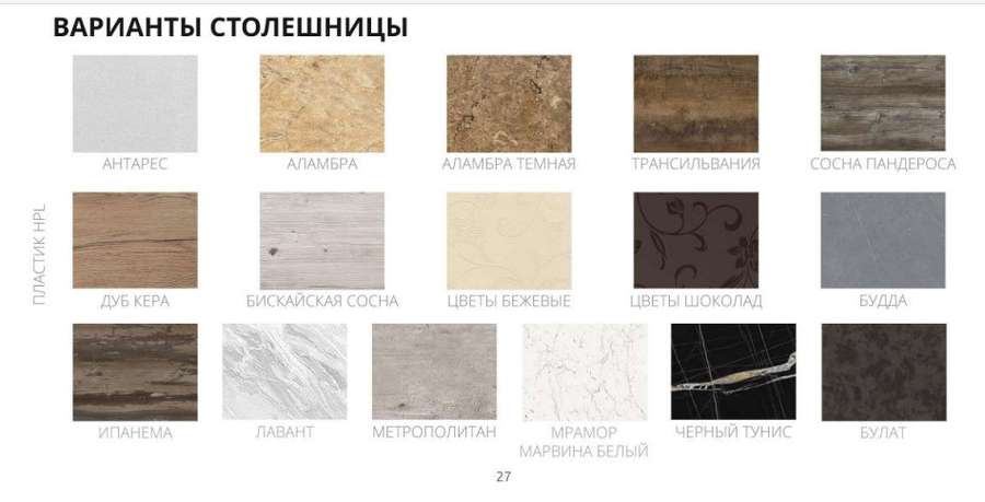 Цвет столешниц: Аламбра, Антарес, Аламбра темная, Гранит.